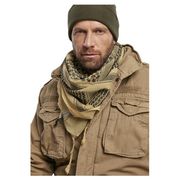 Brandit Shemag palæstinenser Tørklæde i farven Khaki og Sort set på person med jakke