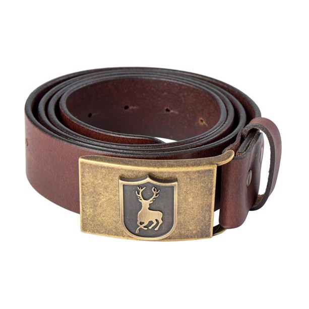 Super flot og holdbart læderbælte i blødt læder. Spændet er elegant, matgyldent og præget med Deerhunters logo. I læderet er der diskret præget Deerhunter. Hvis bæltet er for langt er det ikke nogen sag at justere det, man skal dog være helt sikker og forsigtig, når man gør dette. Det justeres ved at løsne skruerne ved spændet, fjerne den lille læderlap, klippe et stykke af bæltet og skrue lappen på igen.