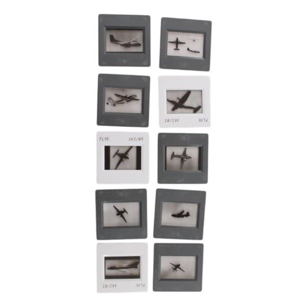 Disse lysbilleder til lysbilledapparat leveres i sæt med 10 stk - forskellige billeder af fly.