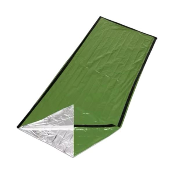 Nødsovepose i alufolie med polyester overflade, som gør den vind og vandtæt. Nød soveposen kan bruges i en nødsituation til at opretholde kropsvarmen, da indersiden er varme reflekterende. Derudover kan den bruges som et sovepose overtræk, eller som et overlevelsestæppe. Der medfølger en praktisk pouch, hvorpå der sidder en nødfløjte hvis du har brug for at tilkalde hjælp.