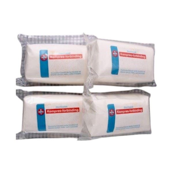 Originale kompresforbindinger fra Dansk Civilforsvar. Dampsteriliseret. Ingen garanti for at de stadig er sterile.