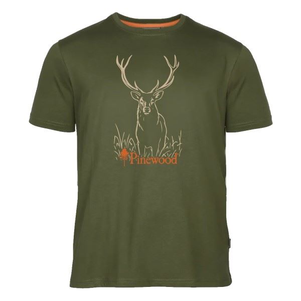 Lækker og blød t-shirt lavet i 100% økologisk bomuld til jagt og fritid. Pinewood Red Deer T-shirten har et flot jagtmotiv på brystet af en kronhjort.