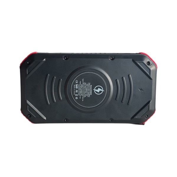 Du kan nemt følge med i batteriets status med at tjekke indikatorerne på powerbanken. Hvis du vender powerbanken med bagsiden op, er der trådløs oplader bagpå.