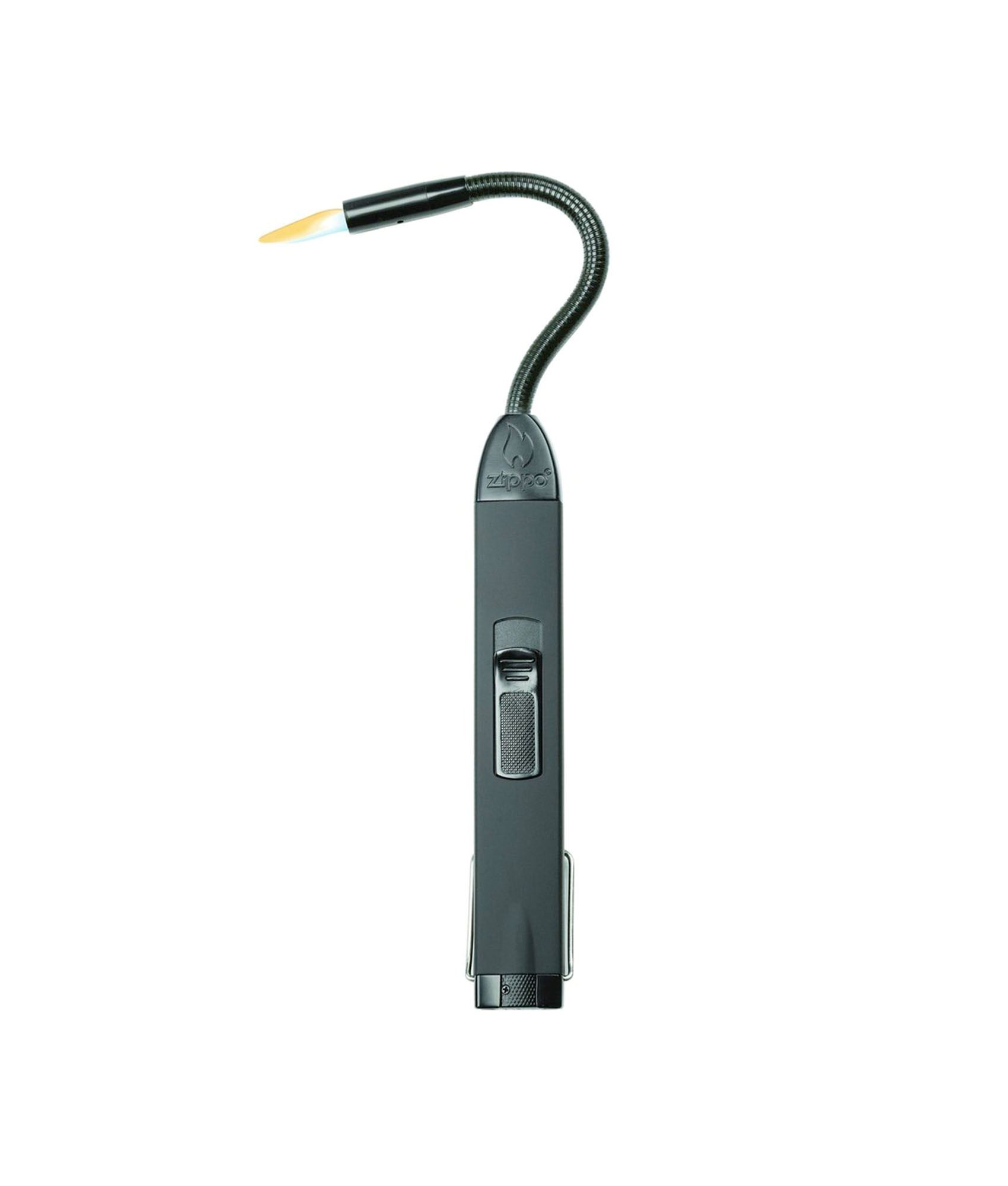 Zippo lighter med bøjeligt hoved. Med det bøjelige hoved kan Zippo Flex Neck-lighterens flamme nå selv smalle og snævre steder såsom fyrfadsstager og bål. Samtidig kan den holde flammen kørende i selv hård vind pga. en speciel dual flame-funktion, der gør flammen ekstra svær at slukke. Lighteren har også en børnesikker tændingsfunktion.
